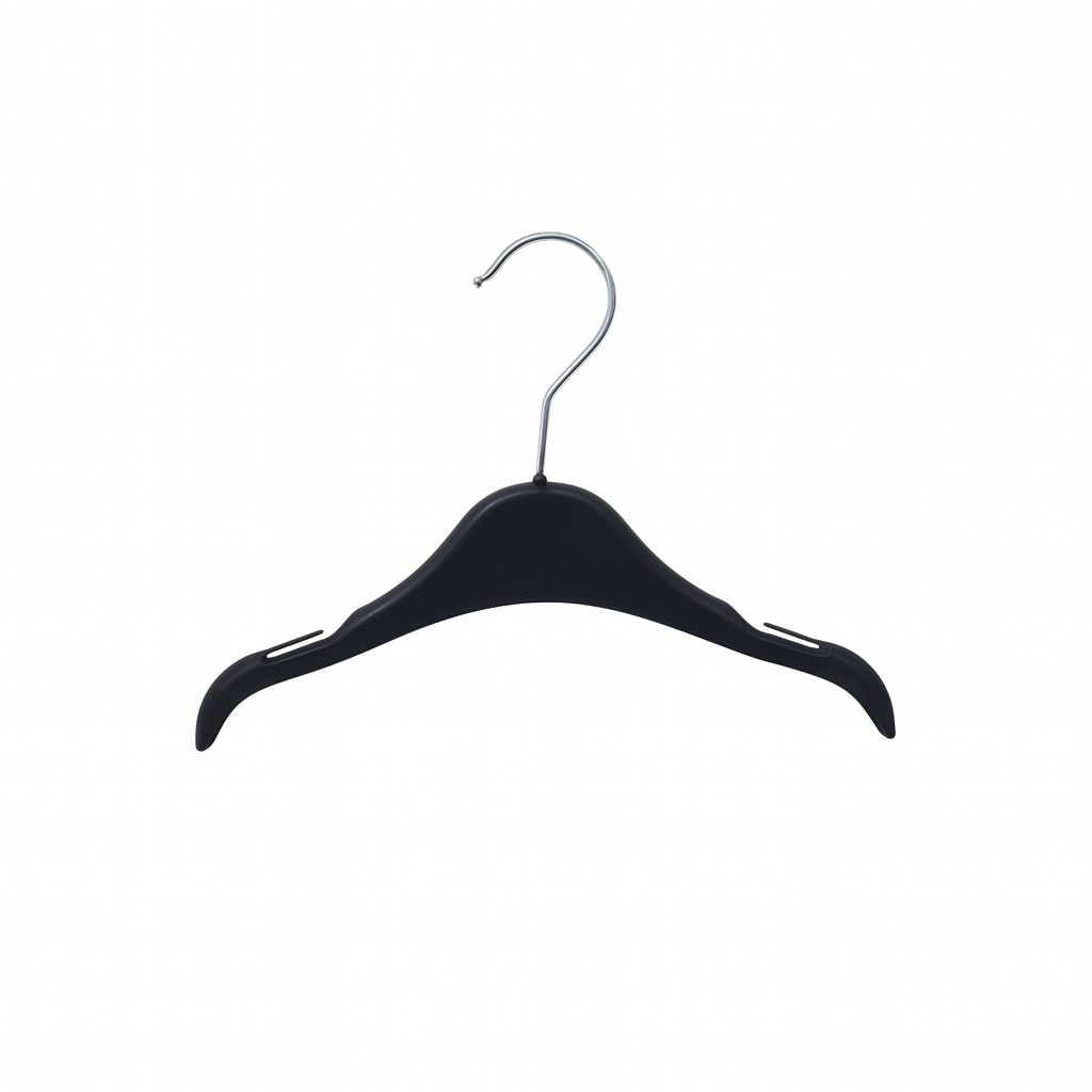 Lichtgewicht kunststof kledinghanger met verstevigd U-profiel. Ideaal voor T-shirts, blouses, overhemden, kinderkleding en lichte jasjes. Stevig, stapelbaar en 33 cm breed — geschikt voor zowel professioneel als huishoudelijk gebruik.